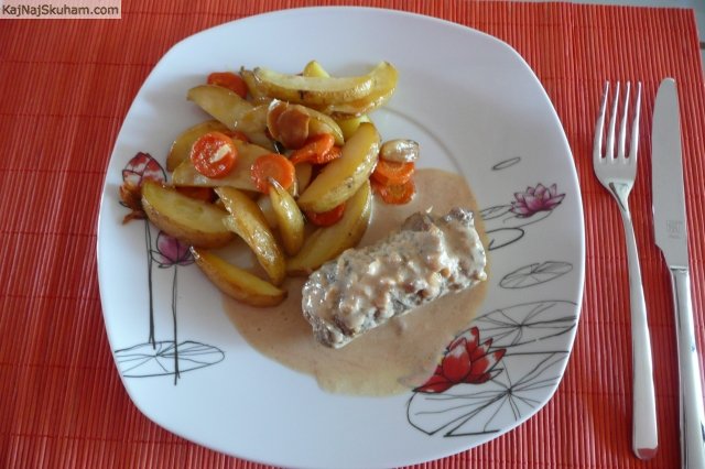 Najprej potolčemo in posolimo zrezke. Nato vsakega po eni strani premažemo z žličko kisle smetane, obložimo z rezinami sira in nasekljanimi beluši. Zvijemo jih v zvitek in spnemo z zobotrebcem.