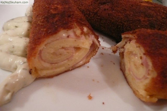 Najprej spečemo palačinke. Nato vsako palačinko položimo rezino sira in rezino šunke. Nato zavijemo v 'rolico', tako da na levi in desni strani palačinko prepognemo navznoter, nato pa zavijemo do konca v rolico in prebodemo z zobotrebcem, da se nam ne razvije. Tako pripravljene spaniramo v (moki), jajcu in drobtinah in ocvremo v olju.