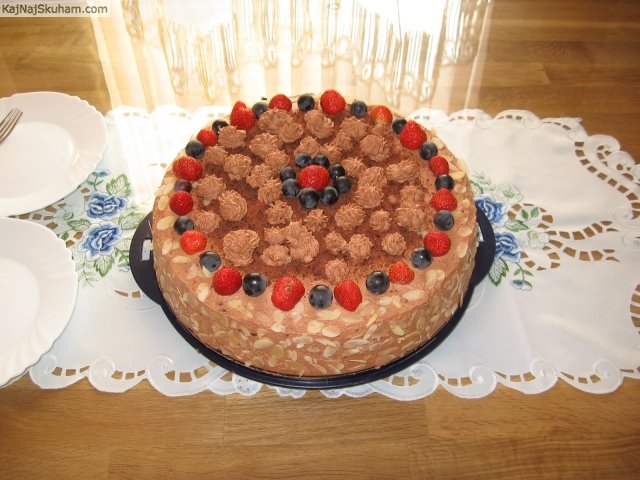 Obe kremi se zelo dobro mažeta, tako lahko torto zelo dobro oblikujemo. Uporabimo katerokoli sadje, priporočam mehkejše kot so banane, jagode, kivi.