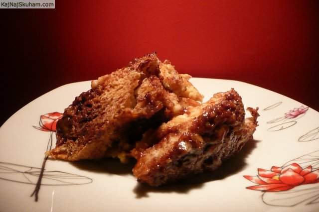 V pekač/posodo razporedimo rezine kruha, jih potresemo z naribano čokolado in prelijemo s tretjino preliva. Postopek ponavljamo do zadnje (tretje) plasti.