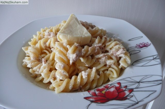 Testenine skuhamo po navodilih na embalaži.V ponev damo konzervo tune, primešamo smetano za kuhanje in segrejemo. Ko so testenine skuhane jih odcedimo in damo v ponev k pripravljeni omaki. Vse skupaj dobro premešamo in postrežemo s topljenim sirom.