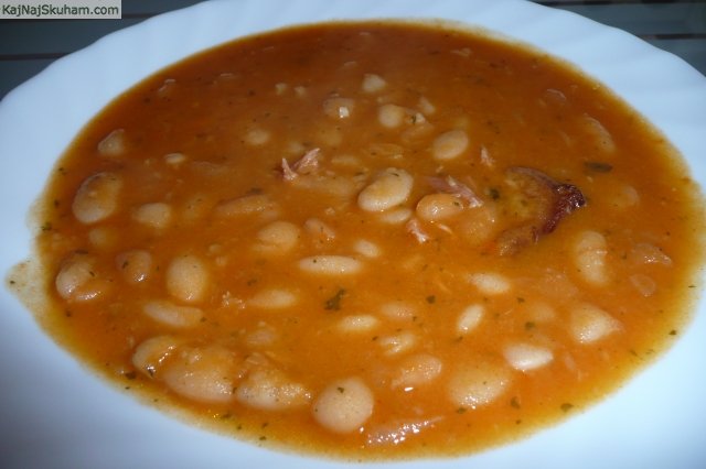 Fižol namočimo in ga skupaj z mesom in drobno sesekljano čebulo damo v velik lonec ter zalijemo z vodo. V kozici naredimo prežganje: na maščobi prepražimo strt česen na katerem zarumenimo moko, nato pa dodamo še peteršilj, papriko in paradižnikovo mezgo. Zalijemo z malo mrzle vode in pokuhamo. Prežganje dodamo kuhanemu fižolu in kuhamo še 15 minut. Po potrebi še začinimo.