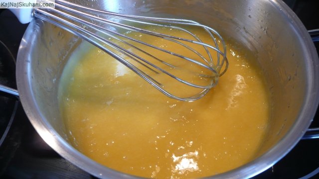 Limonina krema V kozico vlijemo limonin sok, dodamo naribano lupinico dveh limon in sladkor. Kuhamo na šibkem ognju par minut, da se stopi sladkor. V drugi kozici razžvrkljamo jajce in rumenjak, ter med stalnim mešanjem z metlico počasi prilivamo vročo limonin sok. Na šibkem ognju med stalnim mešanjem kuhamo kremo še 5 minut, da se zgosti.