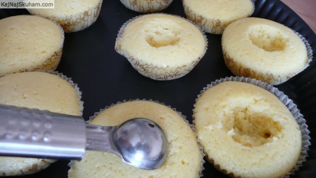 Pečene mafine ohladimo, jih z žličko na sredini malenkost izdolbemo in nadevamo z ohlajeno limonino kremo. Okrasimo jih z limoncello glazuro in z rezinami limone.