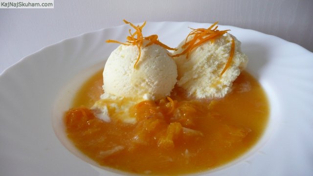 Na trakove nastrgamo lupino ene bio pomaranče. Nato jo olupimo (odtstranimo vse bele kožice) in damo krhlje in lupinico v kozico. Ostale pomaranče ožamemo. Pomarančni sok dodamo v kozico, prilijemo belo vino, dodamo sladkor, vanilin sladkor in vanilijev ekstrakt ter na zmernem ognju kuhamo 20minut. Odstavimo in v mlačno omako dodamo maslo, da se raztopi.