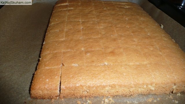 Pečen biskvit ohladimo in narežemo na kocke.