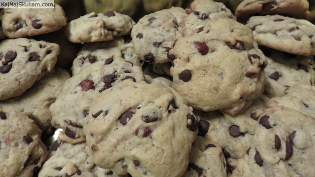 Namesto čokoladnih kapljic lahko dodamo tudi grobo sesekljano temno čokolado. Iz te količine nastane približno 35 piškotov.