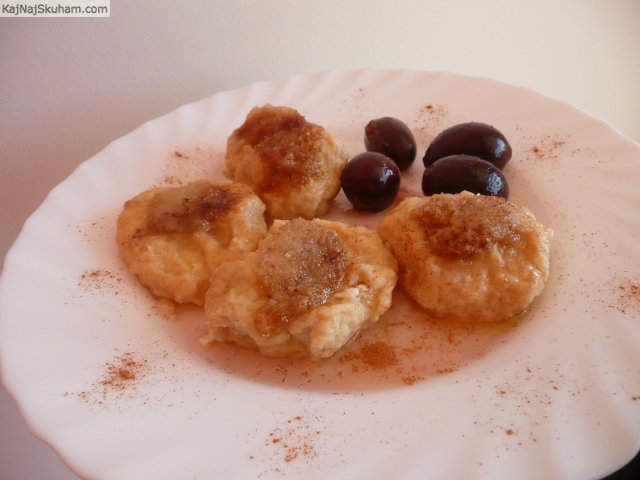 Iz te količine nastane približno 20 cmokov. Delamo raje manjše (maso zajemamo z jušno žlico in nato s pomokanimi rokami oblikujemo cmoke), ker med kuhanjem narastejo.